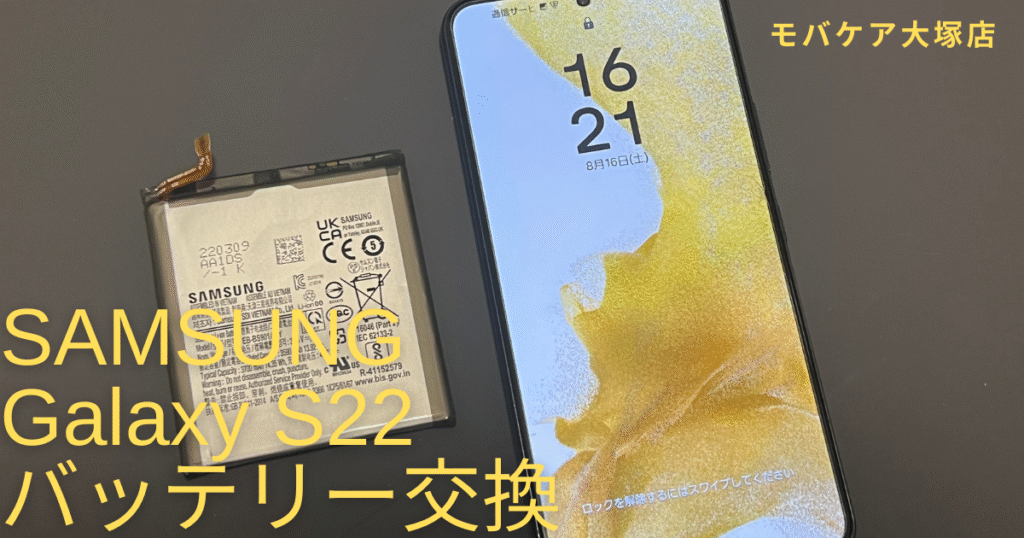 大塚でスマホ修理!Galaxy S22バッテリー膨張による背面浮きもバッテリー交換で改善致します。