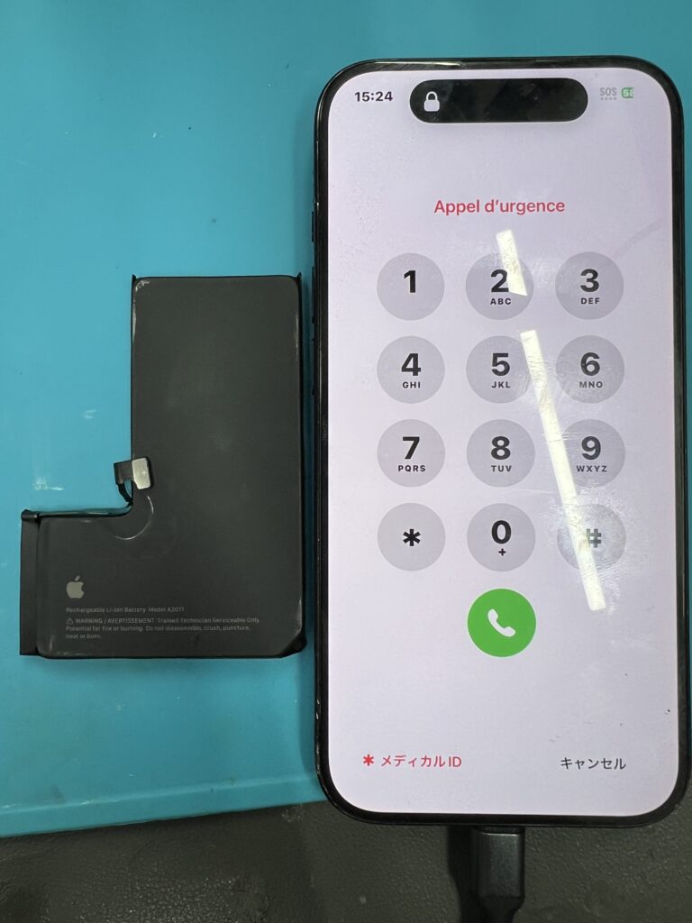 今回はiPhone15Proバッテリー交換のご依頼を頂きました。