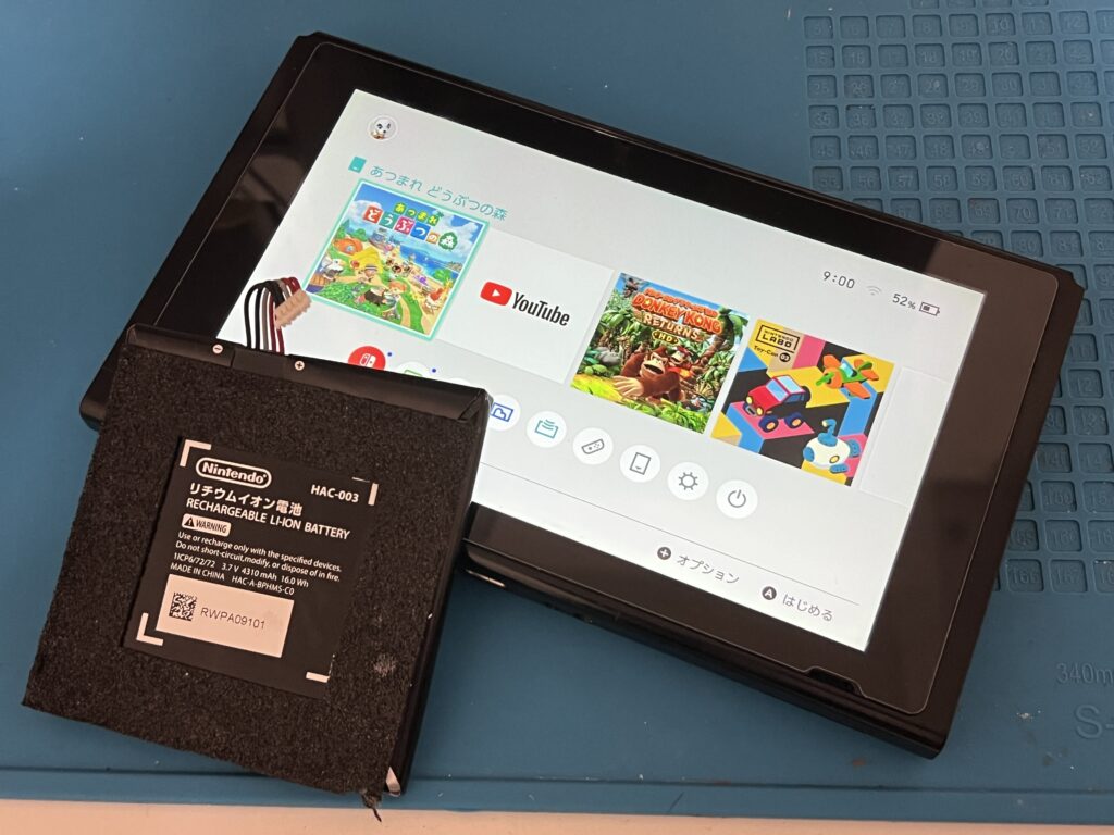 バッテリーの持ちが悪いとご相談を頂きました。Switchは発売から数年経過した端末が多いのでそれなりにバッテリーが劣化してきているかと思います。中には膨張して背面パネルが浮いてしまっている方も時々いらっしゃいます。